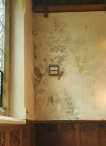 Having successfully achieved our aim of providing a wheelchair-accessible toilet with baby-changing facilities at the back of the church, we have now moved on to our next project. Water has been seeping through the walls of the building for some time, causing unsightly mould and damage to the panelling and other fittings. An architect’s survey has been completed and it has identified that the guttering on the north side of the roof needs to be repaired, as well as repointing and consolidating some of the external masonry, which has delaminated on both the north and south sides. Some of the damage was caused by poor repairs carried out in the 1960s, so extra care has to be taken to get it right this time. The estimated cost of the work needed is £40,000.