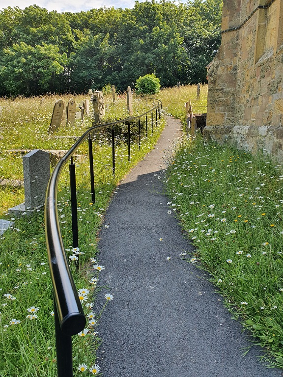 In spite of FoBPC being a relatively new charity, it has already been able to help with improvements to the church and churchyard. In its first year of operation it was able to assist with the provision of a disabled access path to the church. The church had already been raising funds for several years for this purpose so, when a suitable route for the path became possible, it was able to pay for it to be graded and tarmacked. FoBPC supplied a handrail for the walking disabled, lighting for night use and power assistance so that wheelchair users can operate the heavy side door to the church.